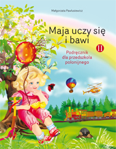 W części II podręcznika materiał słownikowy wychodzi poza najbliższe otoczenie dziecka. Dziecko poznaje więc otaczającą je przyrodę: rośliny i zwierzęta w naturalnej scenerii gospodarstwa, ogrodu, sadu, łąki czy leśnej polanki. Dziecko ma też możliwość klasyfikowania poznanych słówek według pewnego schematu n.p. co lata, co fruwa, co skacze, co jeździ, co stoi, itd. Dzieci poznają polskie litery, wypełniają ich kontury i kształcą słuch fonematyczny poprzez poznawanie dźwięków liter w nagłosie wyrazów. Poznają także podstawowe kształty, cyfry /1 - 10/. Podręcznik "Maja uczy się i bawi" zawiera także zadania domowe, mające na celu utrwalanie poznanych na lekcji słówek, ćwiczeń pamięci w postaci rymowanek i wierszyków oraz ćwiczeń manualnych.